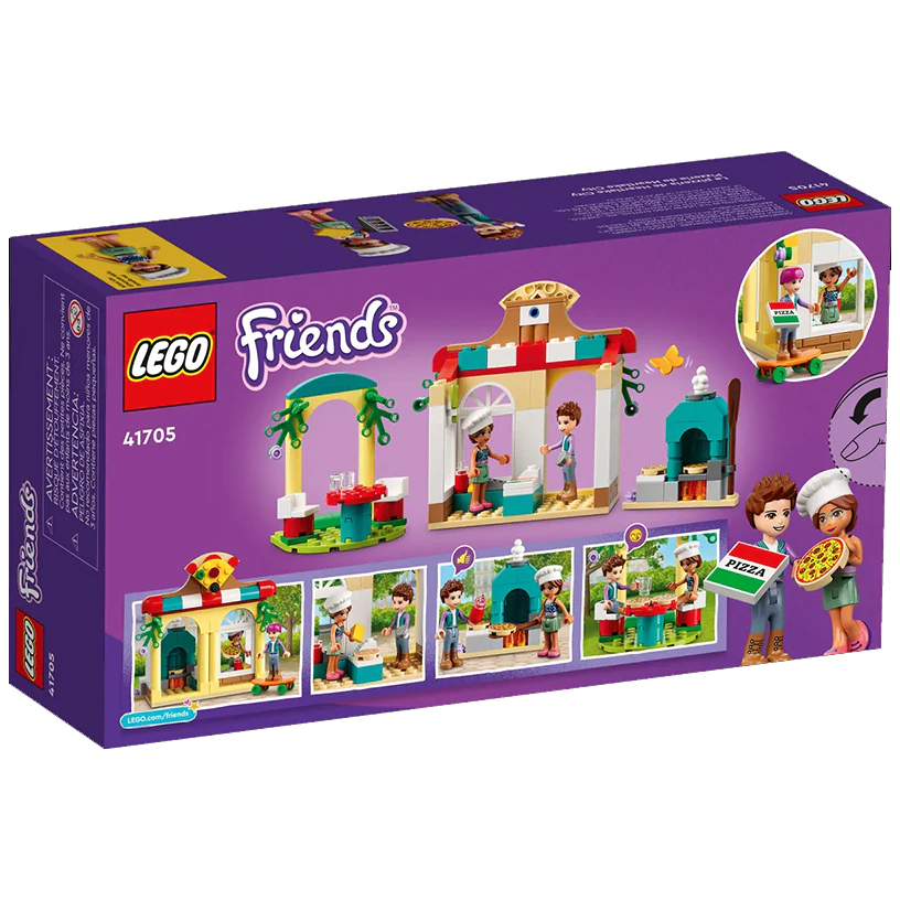 Stavebnice obsahuje model restaurace, kde mohou děti na pokladně přijímat platby a v části s posezením obsluhovat hosty. Díky peci na pizzu a dalším doplňkům sada dětem nabídne flexibilní herní možnosti při provozování vlastní pizzerie. Součástí jsou také 2 postavy LEGO Friends a řada nápaditých prvků, které poslouží jako inspirace pro kreativní příběhy. A až budou všechny pizzy upečeny a snědeny, bude se barevný model skvěle vyjímat na výstavce v dětském pokojíčku.